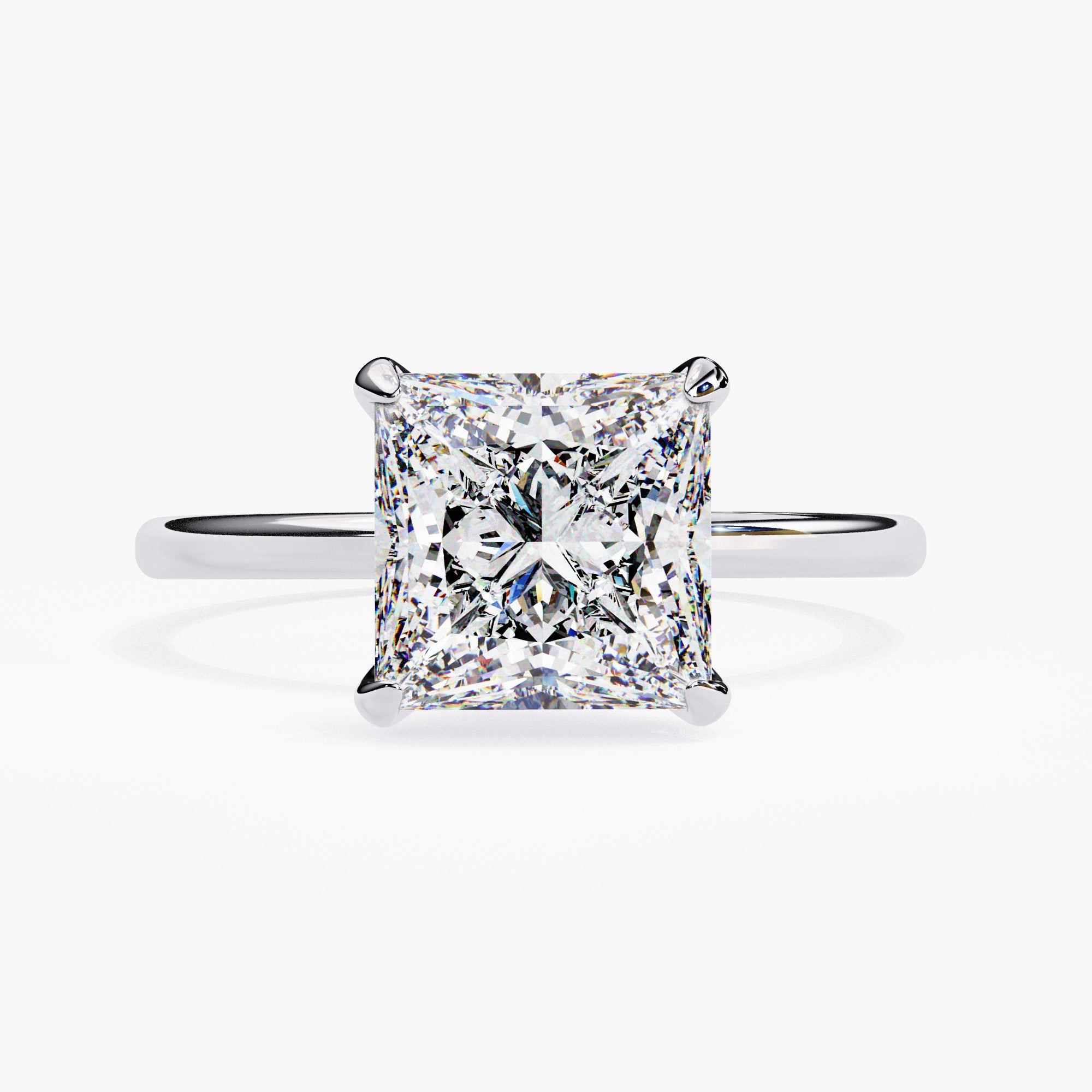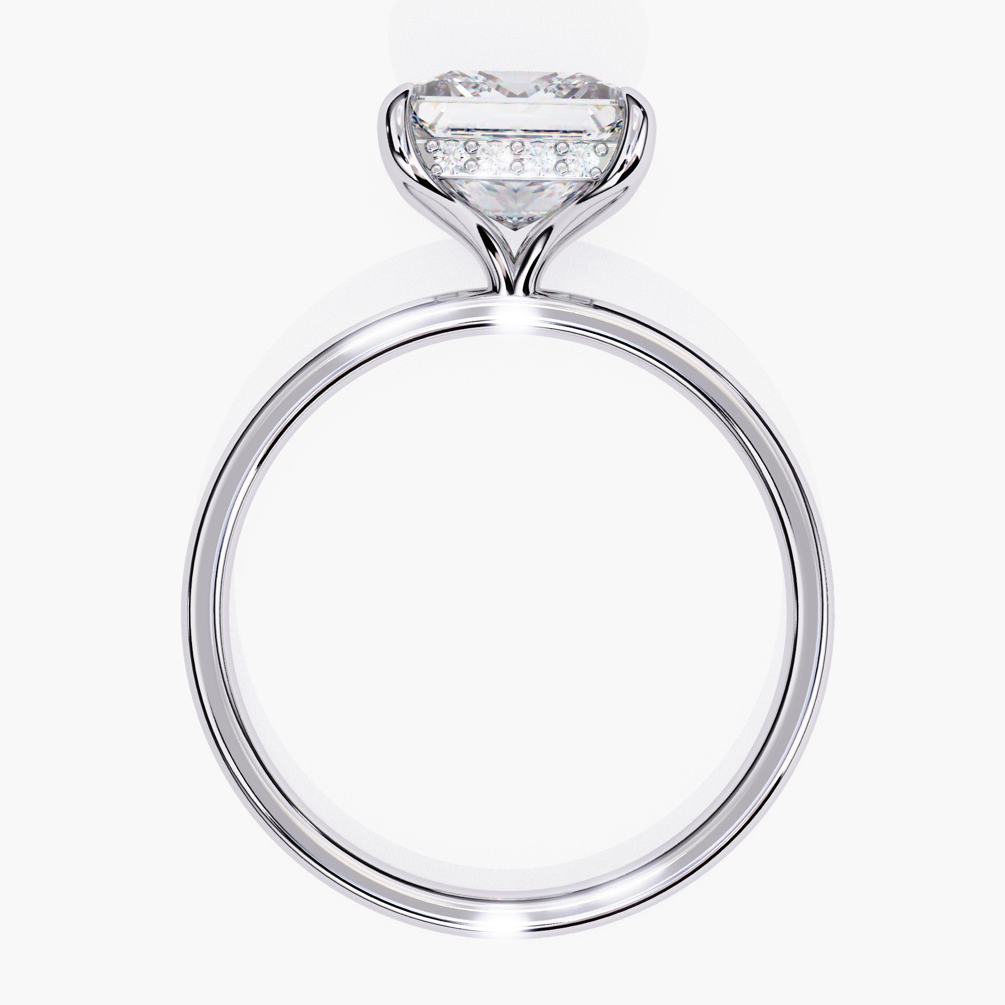 Timeless allure with its princess cut diamond ring featuring a minimalist hidden halo that exudes serene sophistication and enduring romance.