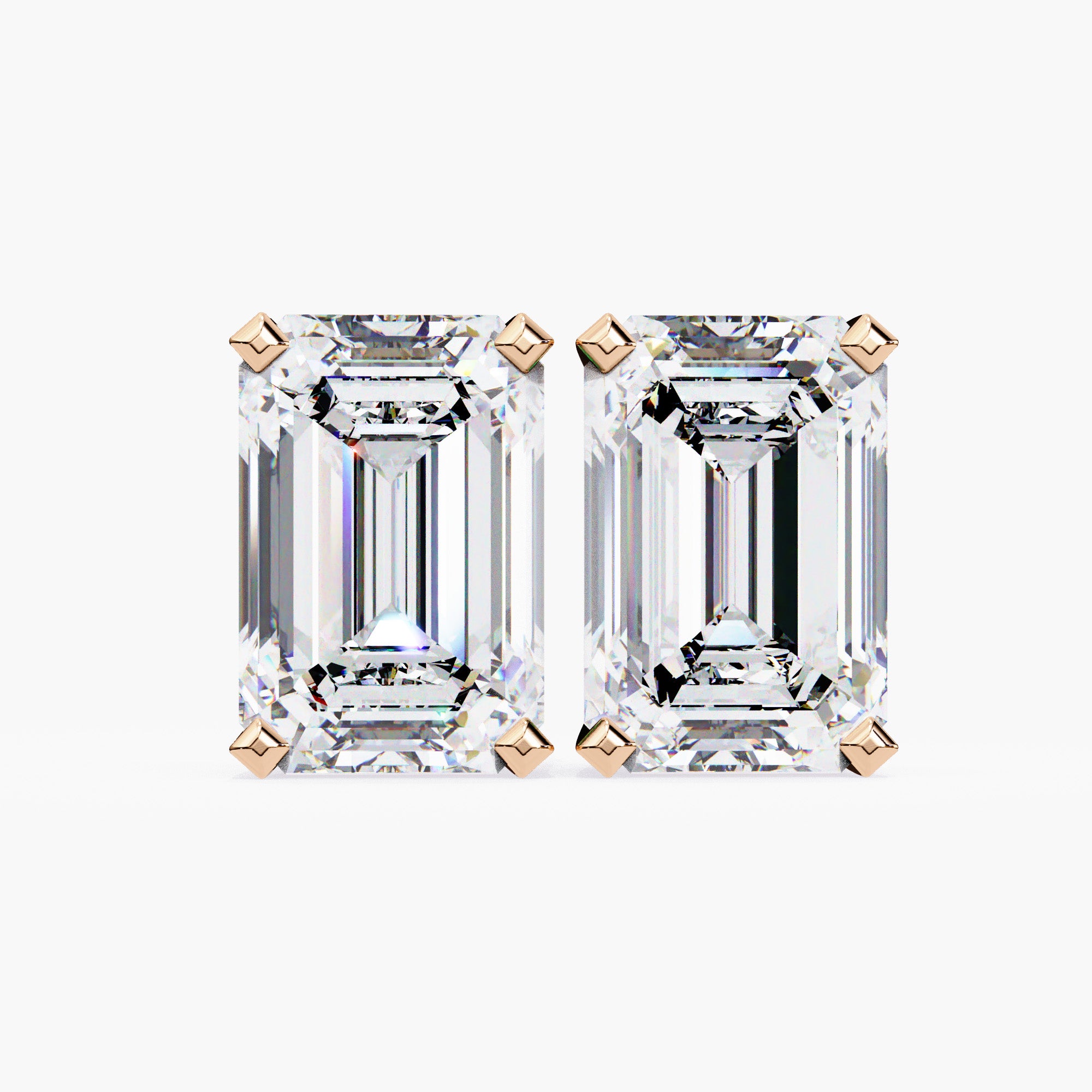 These elegant emerald-cut diamond stud earrings are a testament to classic beauty with a modern edge. The distinct, elongated lines and transparent clarity of each stone are highlighted by a minimalistic rose gold setting for a stunning, sophisticated finish.