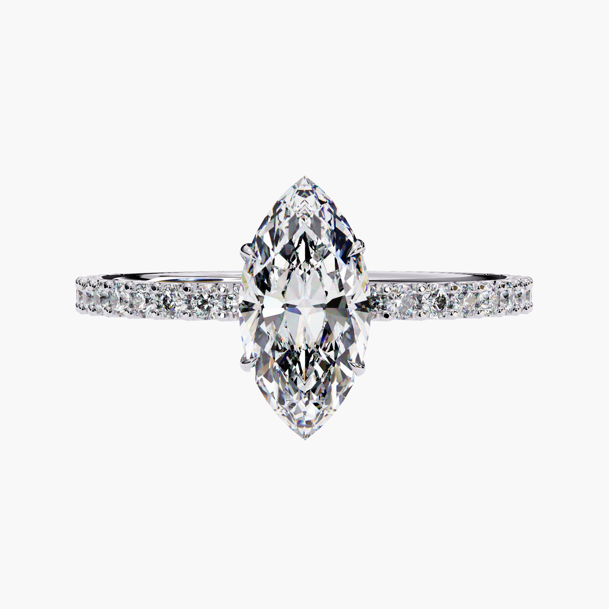 This ring features a marquise-cut diamond cradled within a sleek and secure four-prong setting. With its elongated silhouette and graceful curves, the marquise diamond exudes a sense of regal elegance and timeless charm. Perfect for those who appreciate classic beauty with a touch of modern sophistication.