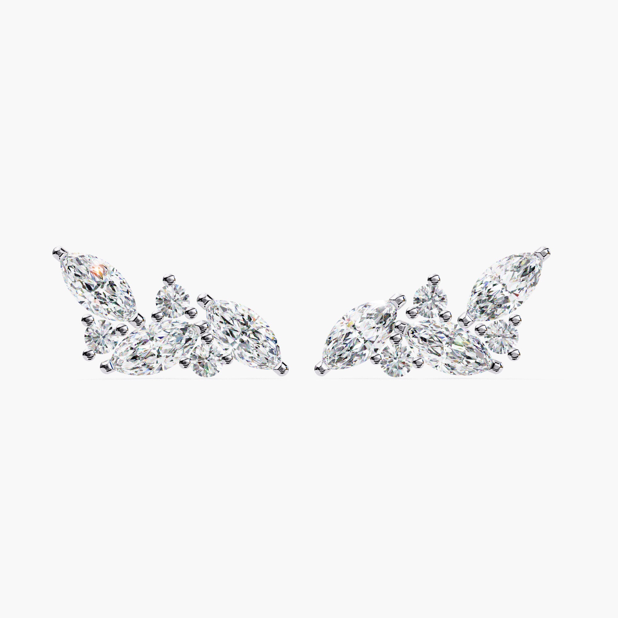 These earrings are crafted into a graceful leaf design, each marquise diamond meticulously set to capture the essence of nature's symmetry. They reflect a brilliant light, mirroring the delicate form of a freshly unfurled leaf in spring.