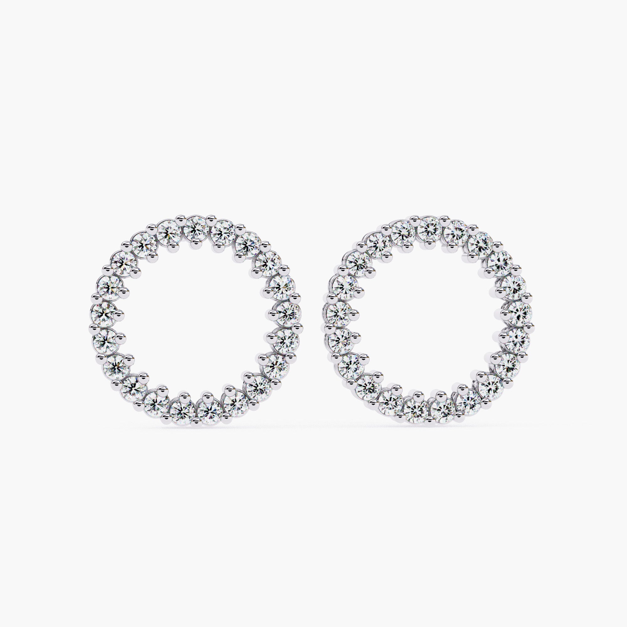 Embrace refined simplicity with these hollow round earrings, their outline glistening with pave-set diamonds that offer a delicate sparkle. Perfect for everyday use.